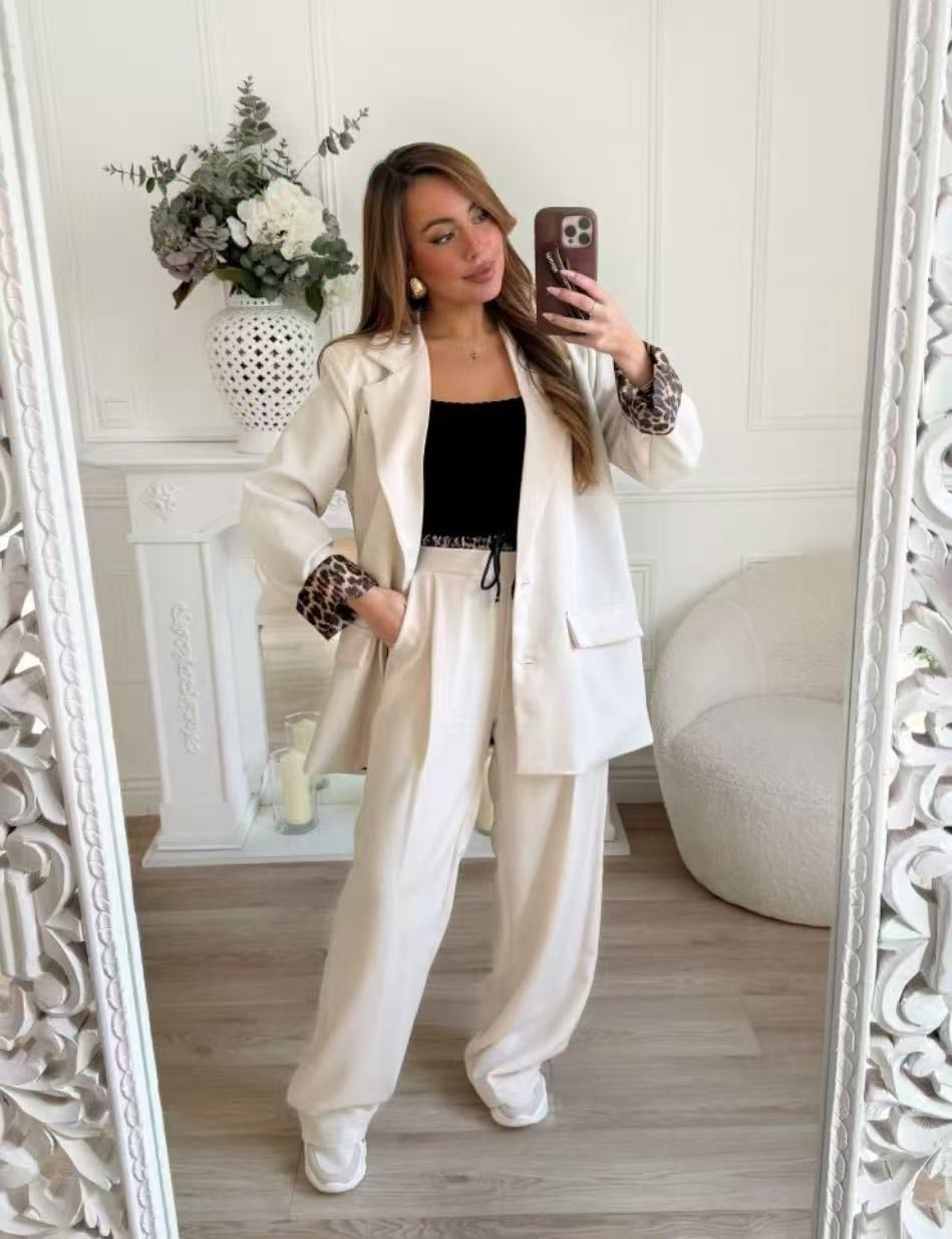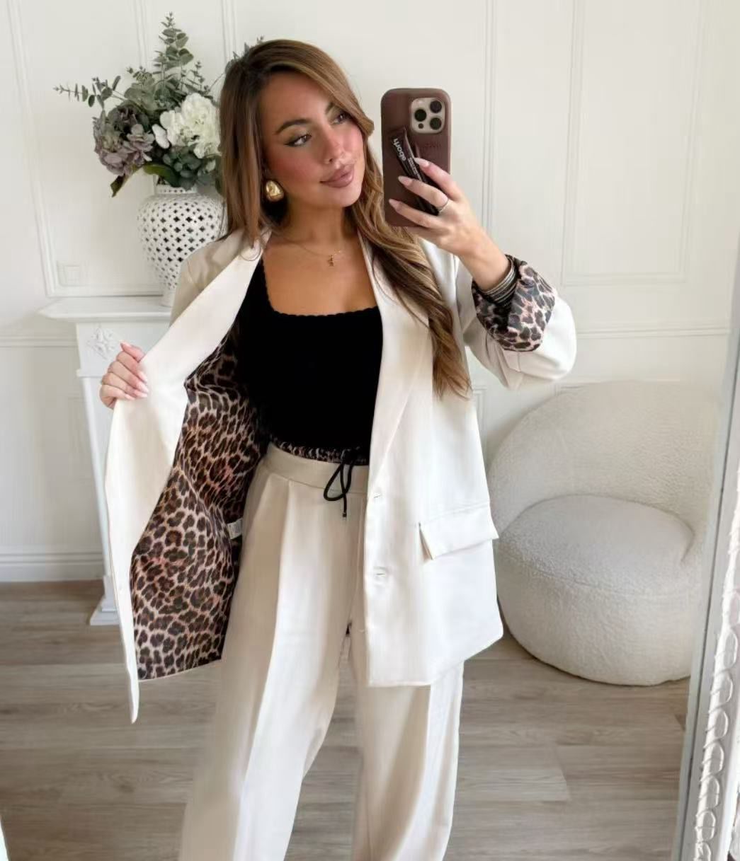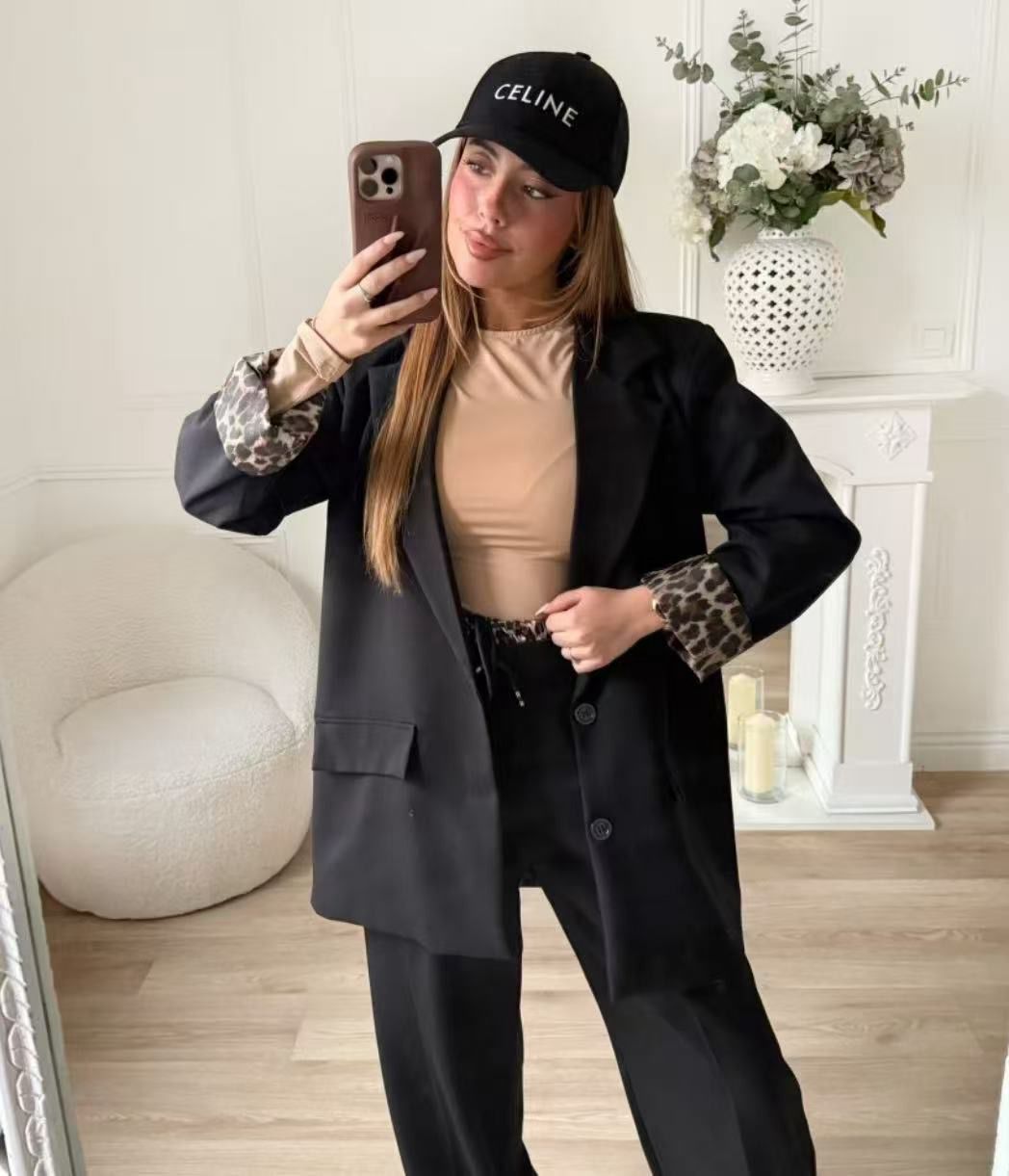 Κουστούμι γυναικείο oversised με λεοπαρ λεπτομερεια!!